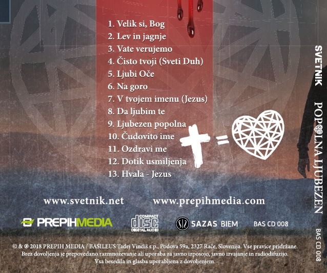 POSEBNA PONUDBA! Ob nakupu Svetnikovih CDjev prejmete še 1 GRATIS tuj CD po vaši izbiri! Gratis tuj CD lahko izberete izmed naslovov na tej povezavi in ga dodate v košarico. 100% popust na najdražjega iz te kategorije bo obračunan na blagajni, če bo v košarici tudi vsaj 1 Svetnikov CD. (Samo na PrepihMedia.com.)